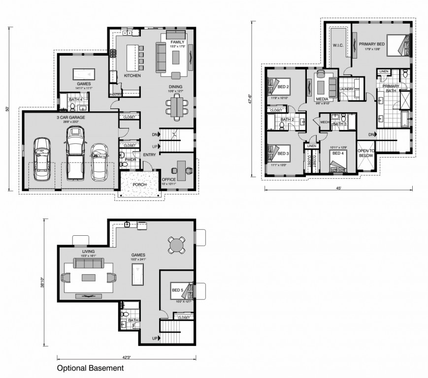 The Ashland two-story design combines simplicity with functionality, and with three distinct living areas there is plenty of space and privacy for the entire family. On the ground floor, a welcoming foyer leads to an open concept main living area with u-shaped entertaining kitchen, spacious dining and family rooms with easy access to the backyard. A separate game room, office, and media room add to the impressive features of this home. On the second floor you’ll find three guest bedrooms, two full bathrooms, a convenient laundry room, and a private primary bedroom complete with full 5-piece bath. An optional basement that can be customized to suit your needs delivers additional space and flexibility for today’s family.