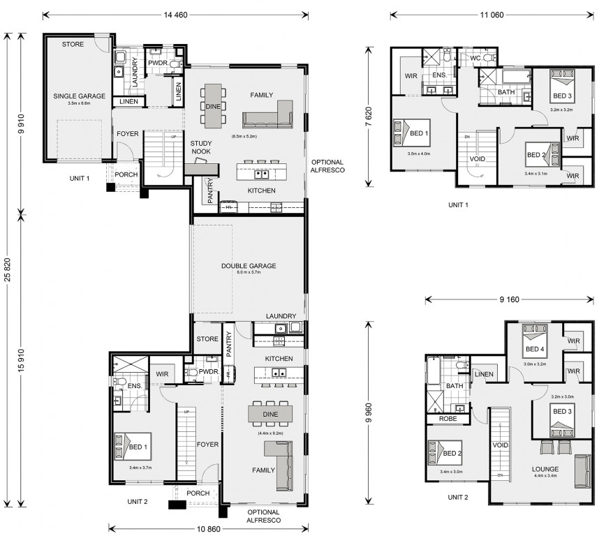 The Caulfield is a two-storey dual occupancy design with a front and rear dwelling. Each dwelling has its own individual layout and features with impressive street appeal that work in symmetry with each other.