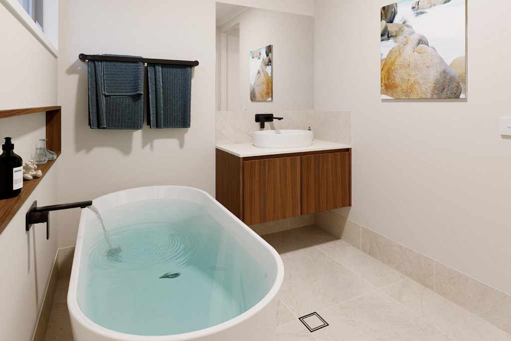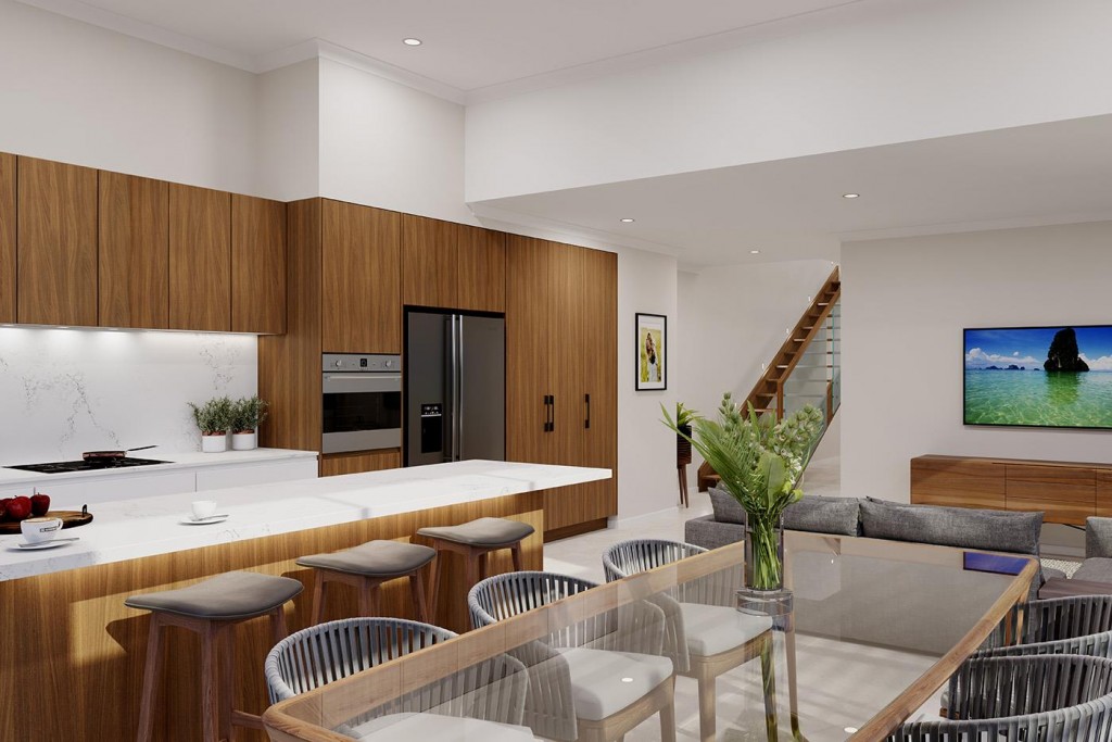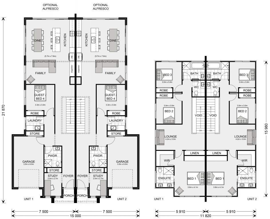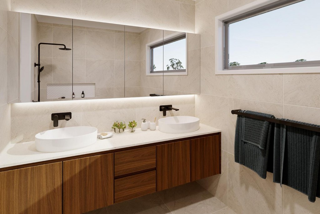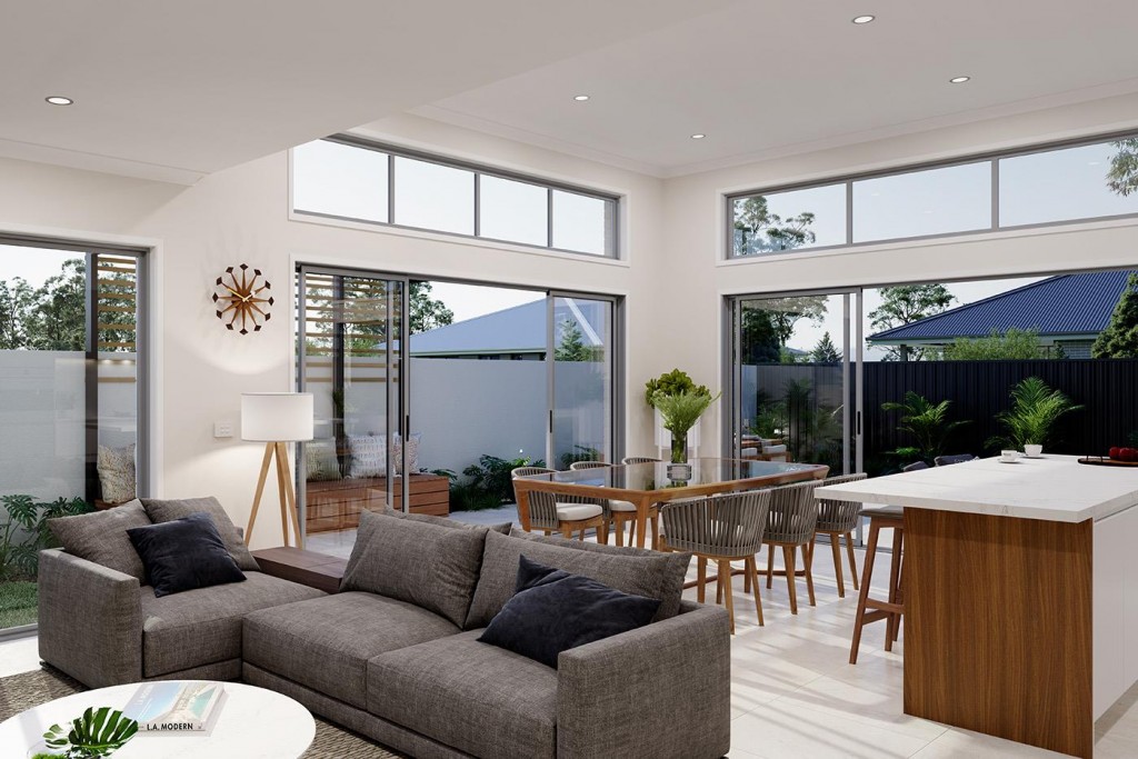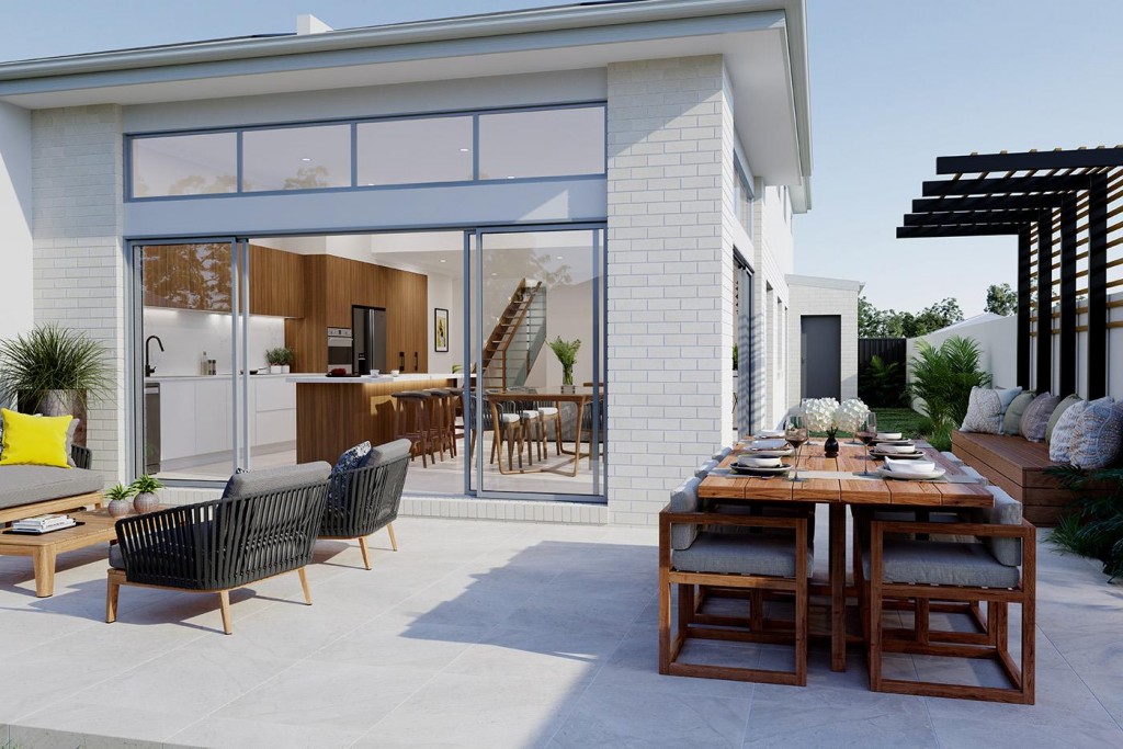 The Chadstone is a two-storey dual occupancy design with identical layouts, features, and impressive street appeal to both dwellings, mirrored and separated by a central dividing wall. Also available as a single dwelling.