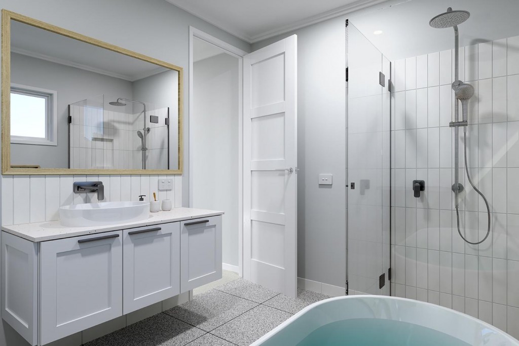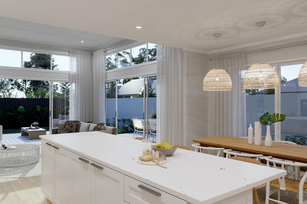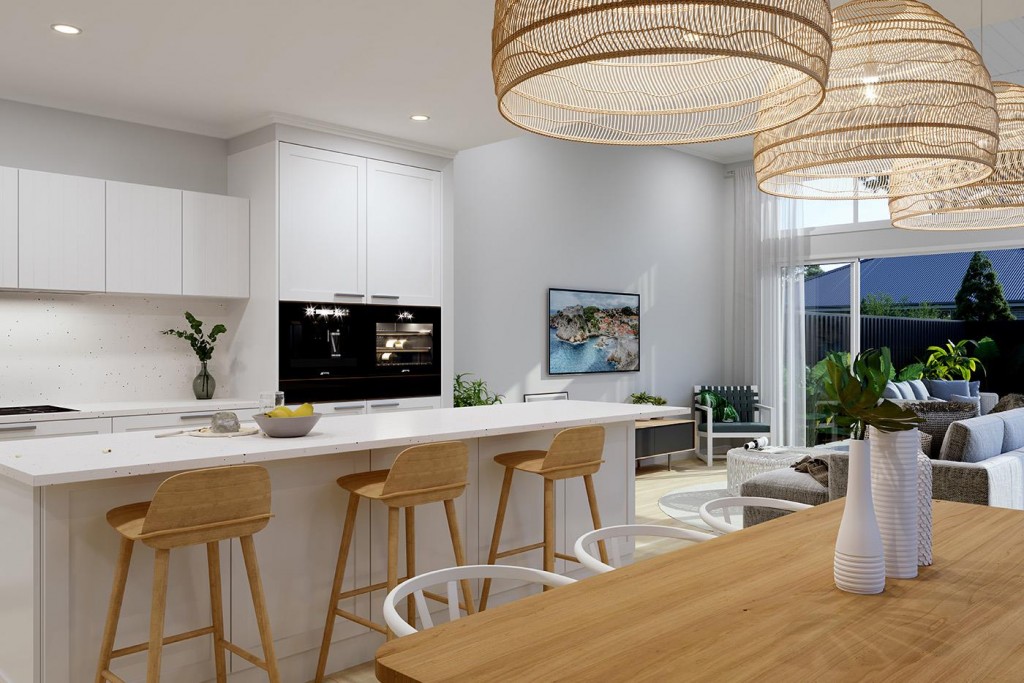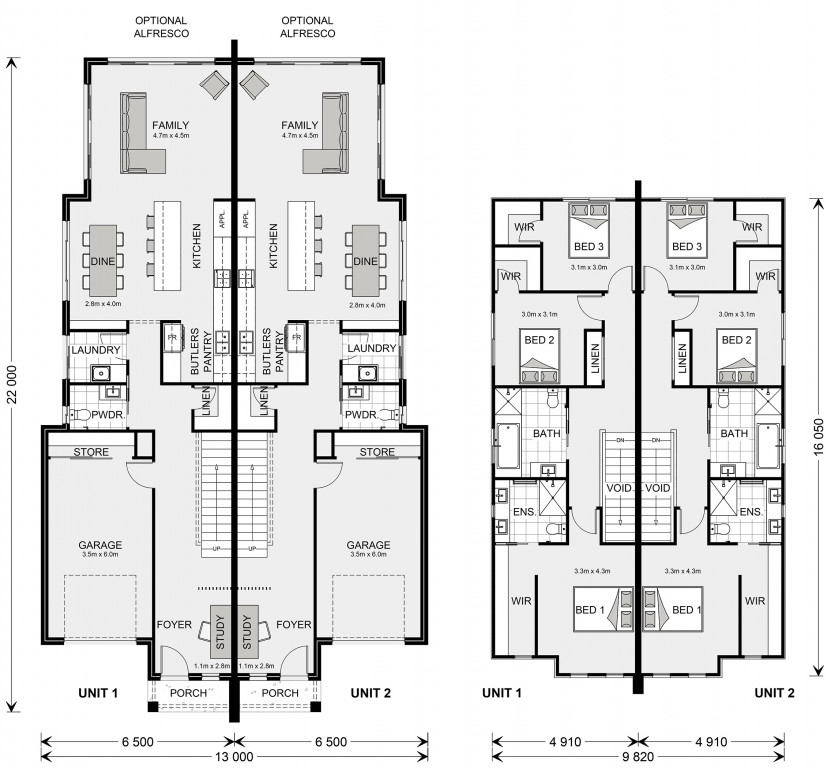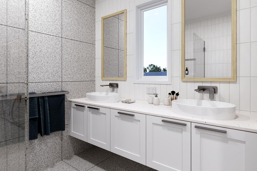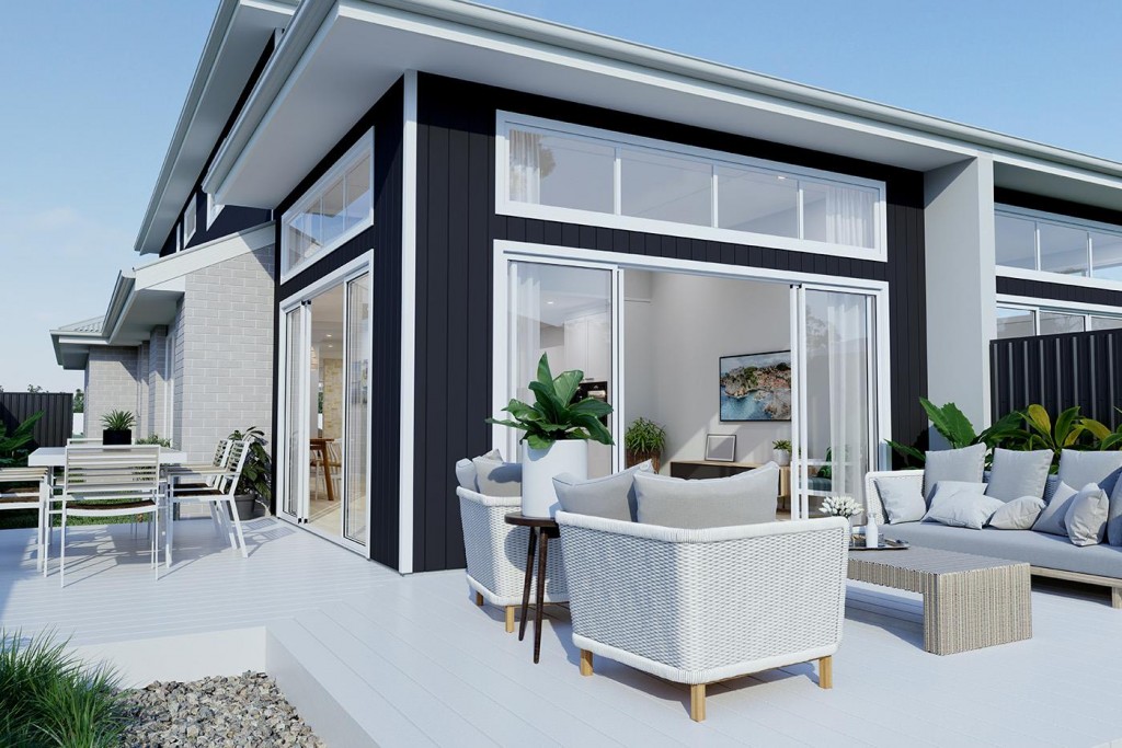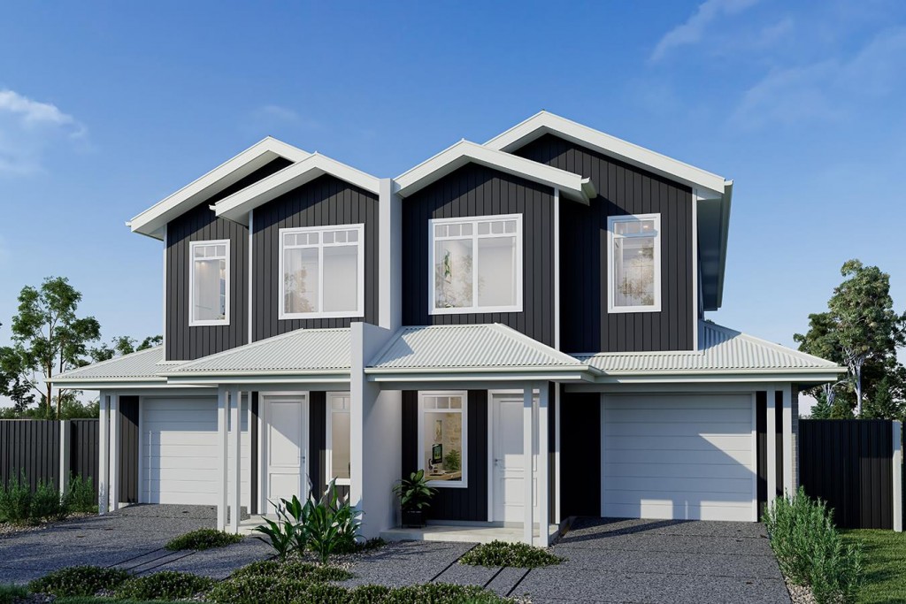 The Essendon is a two-storey dual occupancy design with identical layouts, features, and impressive street appeal to both dwellings, mirrored and separated by a central dividing wall.