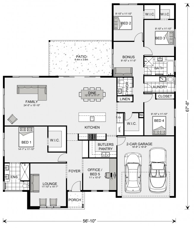 Wide Bay Designs, exclusive to G.J. Gardner Homes, has been created to suit wider sites, its expansive frontage naturally enlarging its appearance and giving it a magnificent visage which is sure to impress.